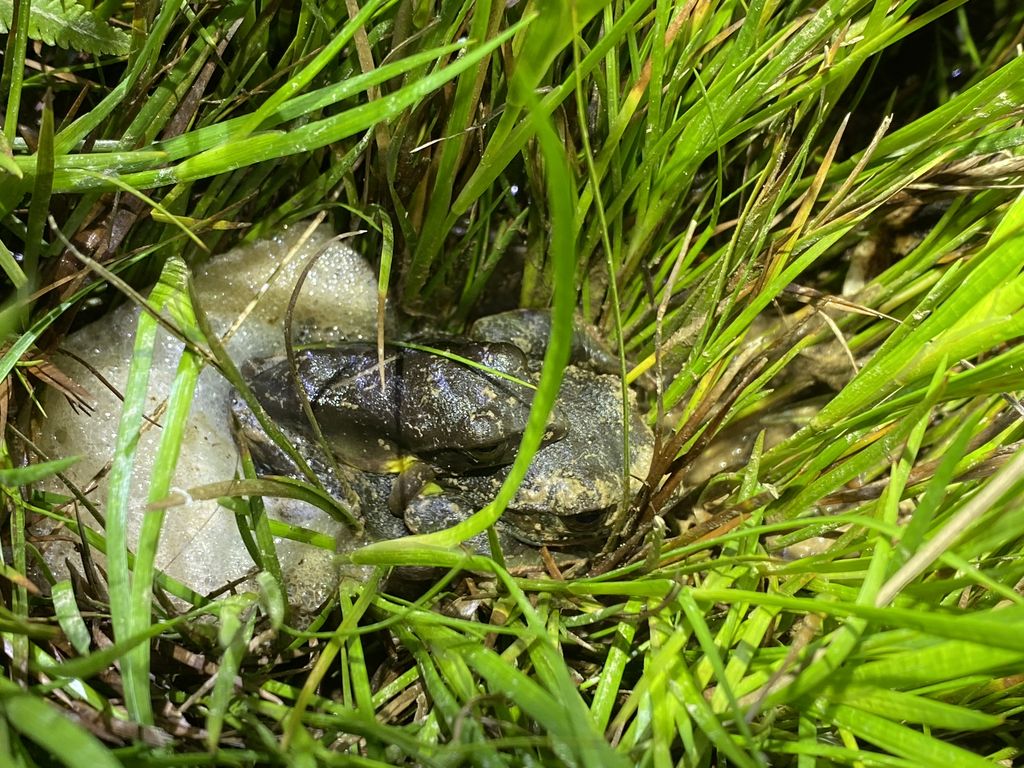 在冬季參加【觀察兩爬】行程看到沖繩樹蛙的可能性很高,甚至有可能看到正在產卵的樣子,3月-5月可以看到沖繩樹蛙的蝌蚪、剛變態的小蛙,在【夜間賞鳥】行程中也有機會看到跑到馬路上的沖繩樹蛙,我們會將其從路面移開,避免這些樹蛙被路殺。